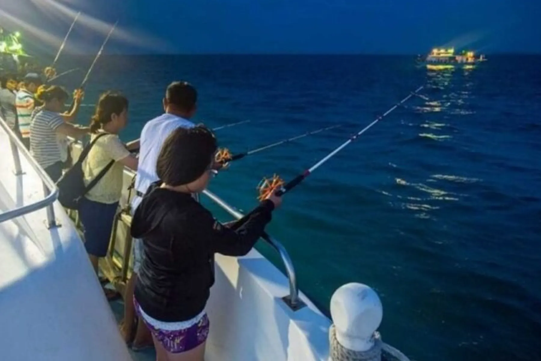 Trổ tài câu mực trên tàu.